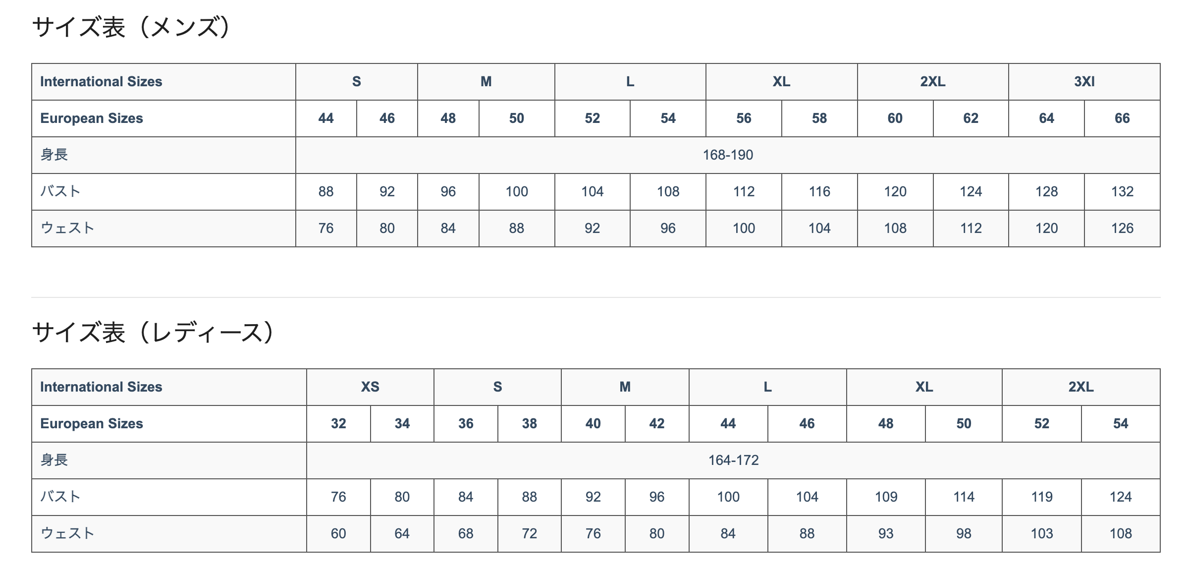 XS(※ドイツ取り寄せ)・S・M・L・XL・2XL・3XL(※ドイツ取り寄せ)